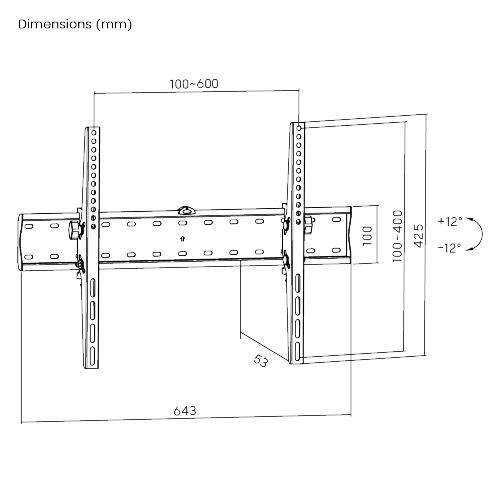 - Območje nagiba: +12°~-12°